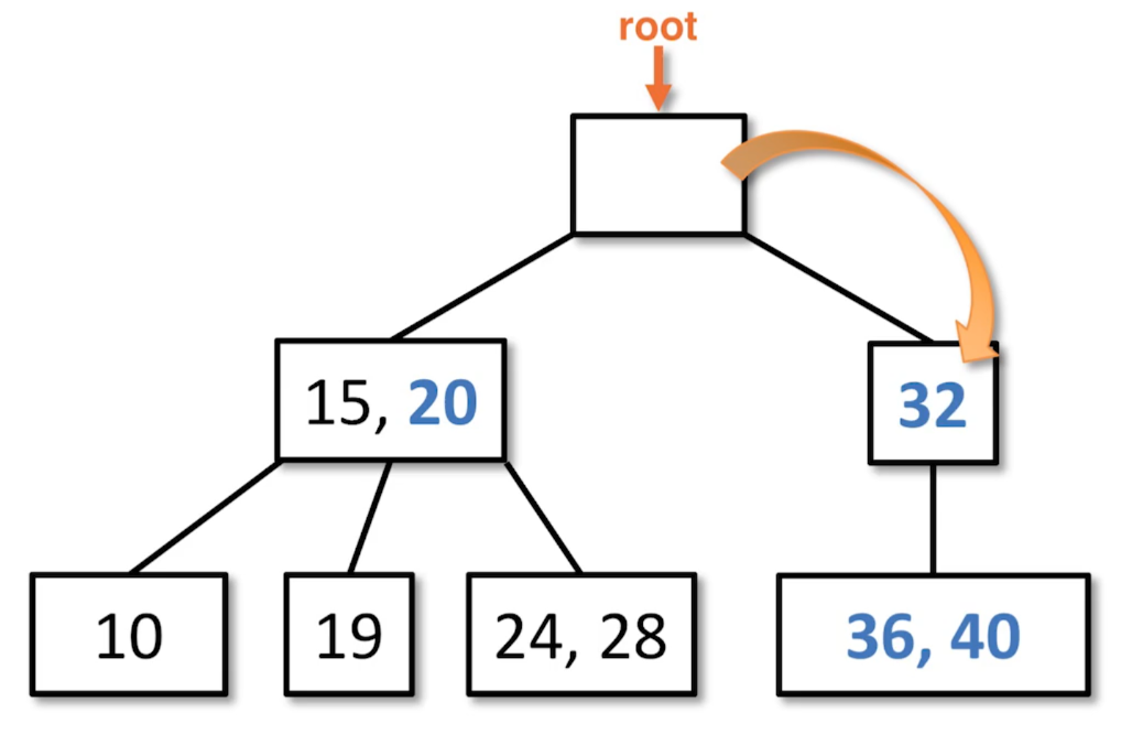 - The overflowed node is “split” while maintaining the Order Property.