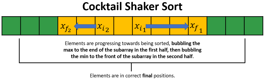 Performs Bubble Sort twice to bubble the largest element to the top of the array and the smallest element to the bottom of the array.