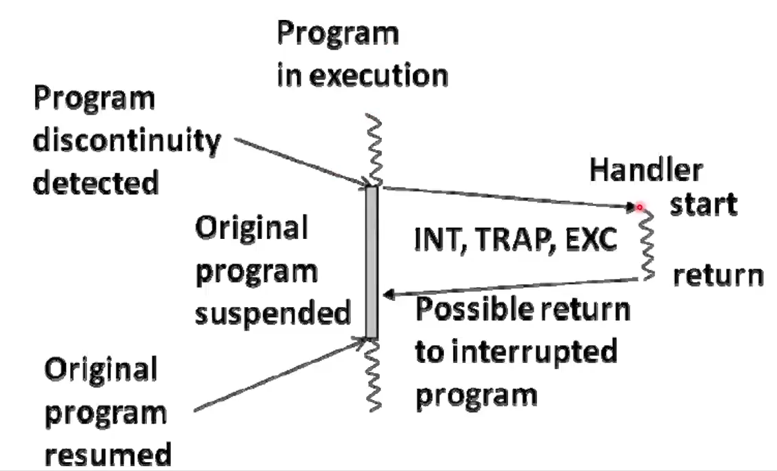 - Program error (illegal opcode, division by zero)
