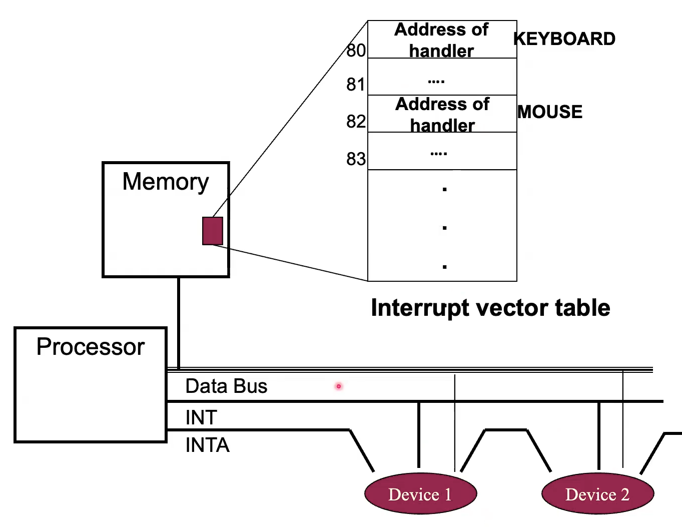 Map from interrupt ID to address of handler code in Memory.