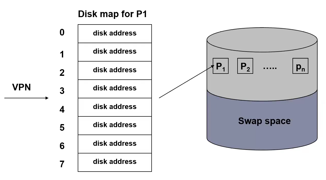Maps VPN to Page location in the Swap Space on the disk, so it can be fetched back into Memory. Will show up in PCB