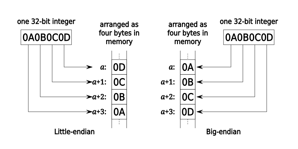 Refers to the order in which bytes are stored in memory.