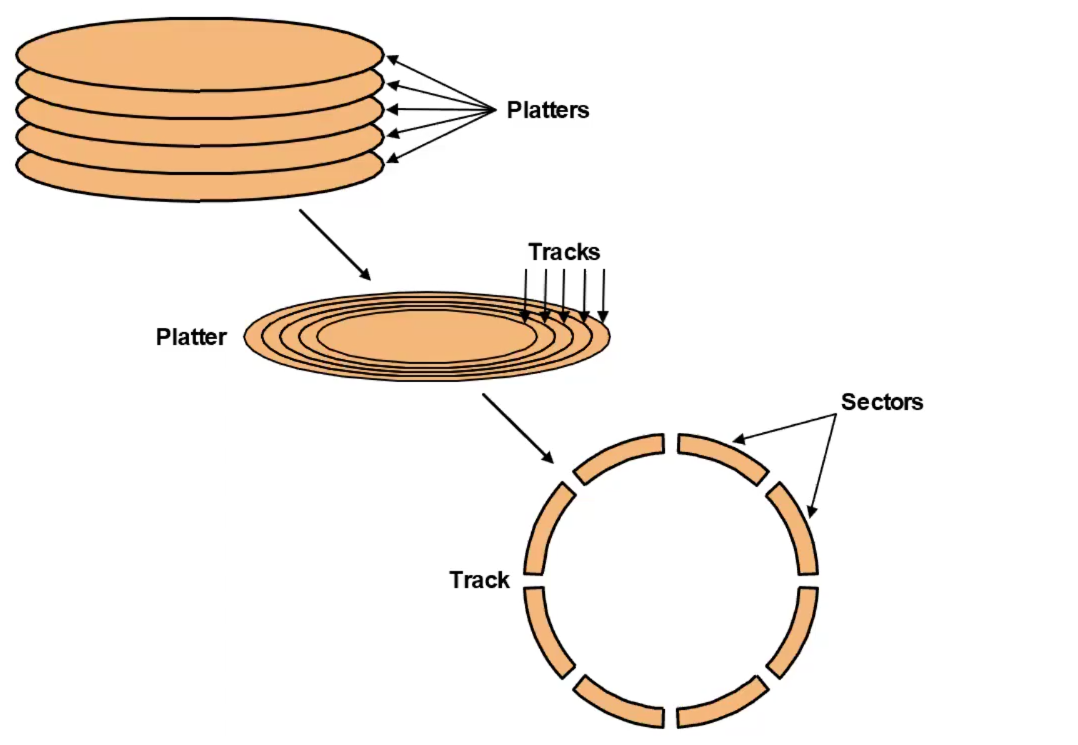 A platter is like a floor of storage. A disk drive is made up of many floors of platters. The spin of the platter is faster than the movement of the Read/Write Heads