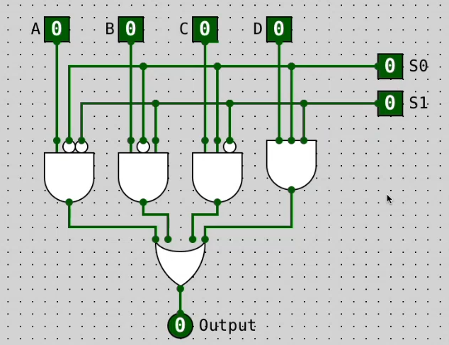 “Muxer” Allows us to choose a signal to pass through, from ABCD in this case Similar to Decoder Each gate corresponds to an unsigned integer determined by For an ALU, the each operation has an Opcode, which is in this case.
