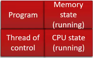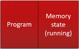 We can also split this view more finely as follows, into program + memory state + Processor state + Thread of control.