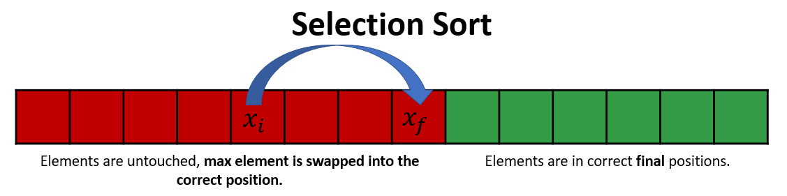 Iterative selects the maximum element in the unsorted subarray, and swaps it with the last element in the subarray.