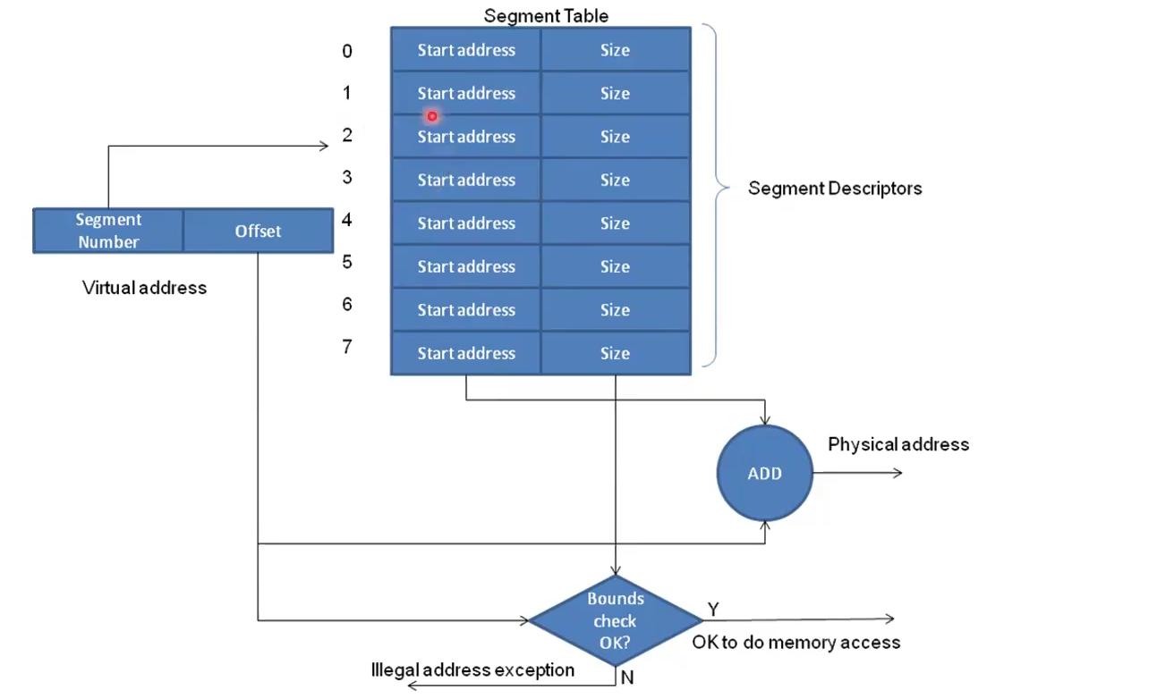 Link to originalThis is basically Base + Limit but for segmented virtual memory It is different because of the size in the segment table and the need to compare the bounds