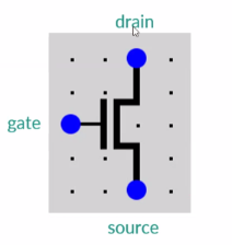“N-type metal–oxide–semiconductor field-effect transistor”, “N-type MOSFET” As opposed to pMOS “Switch” is closed if input is high Must connect source to ground; See NOT Gate InputConnectionHConnectedLDisconnected