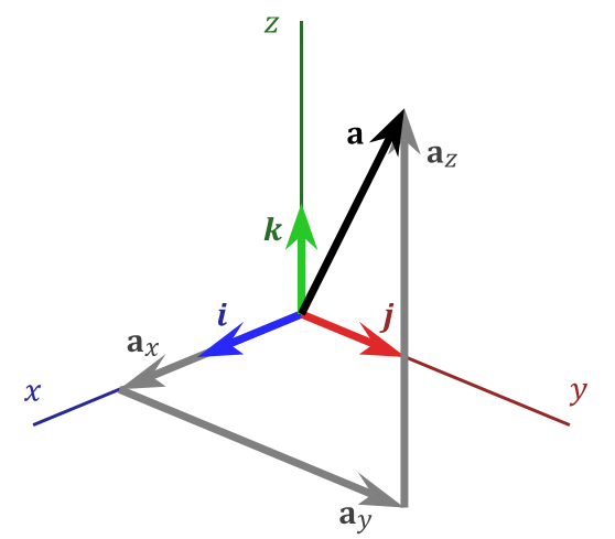 Standard basis vectors i, j, k and vector components of a, denoted here ax, ay, az
