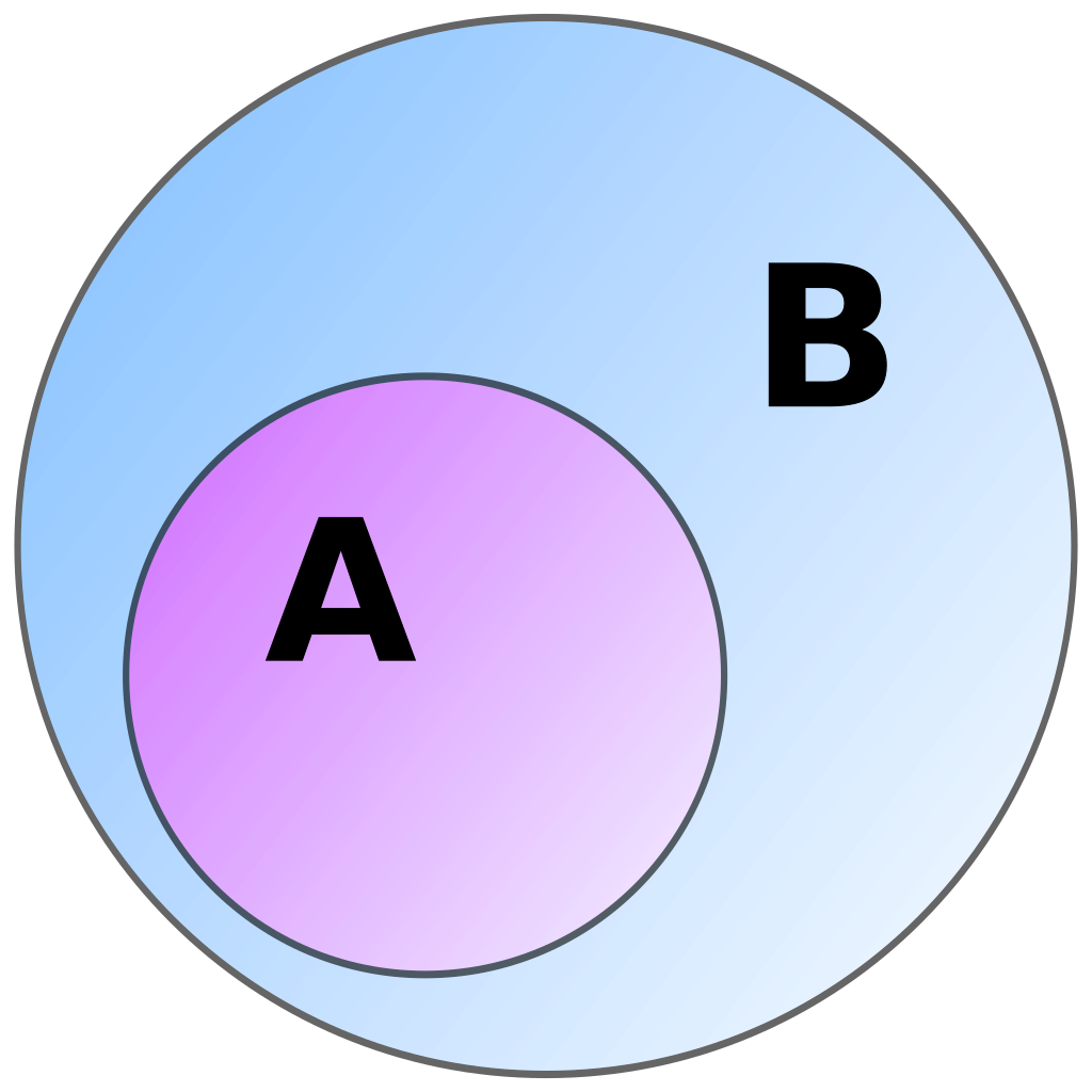 A part of a Set; Set A is a subset of B. Definition A set is a subset of if all elements of A are also elements of B. Proper Subset