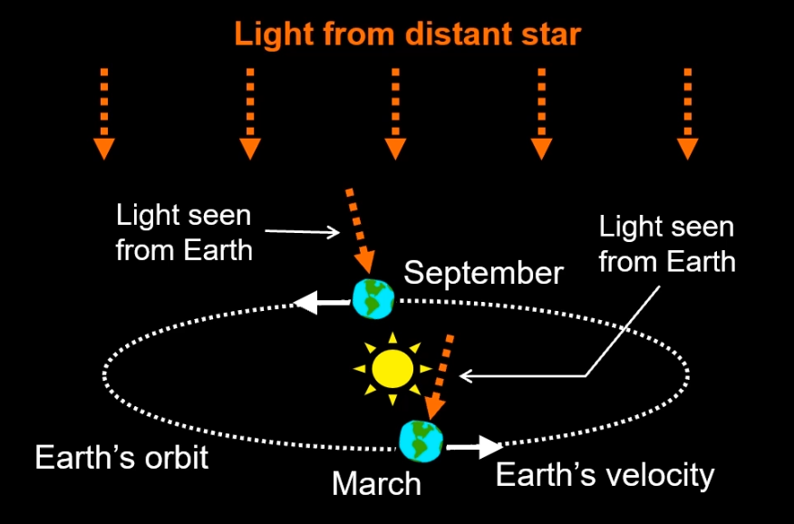 A direct result of the ideas of Galilean Transformation, the apparent angle of incident astronomical light depends on the velocity of the Earth’s frame.