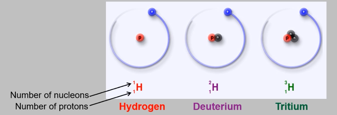 Atoms with Same Atomic Number (Proton Number), Different Mass Number (Nucleon Number) Stablest isotopes have 40-50% more Neutrons than Protons