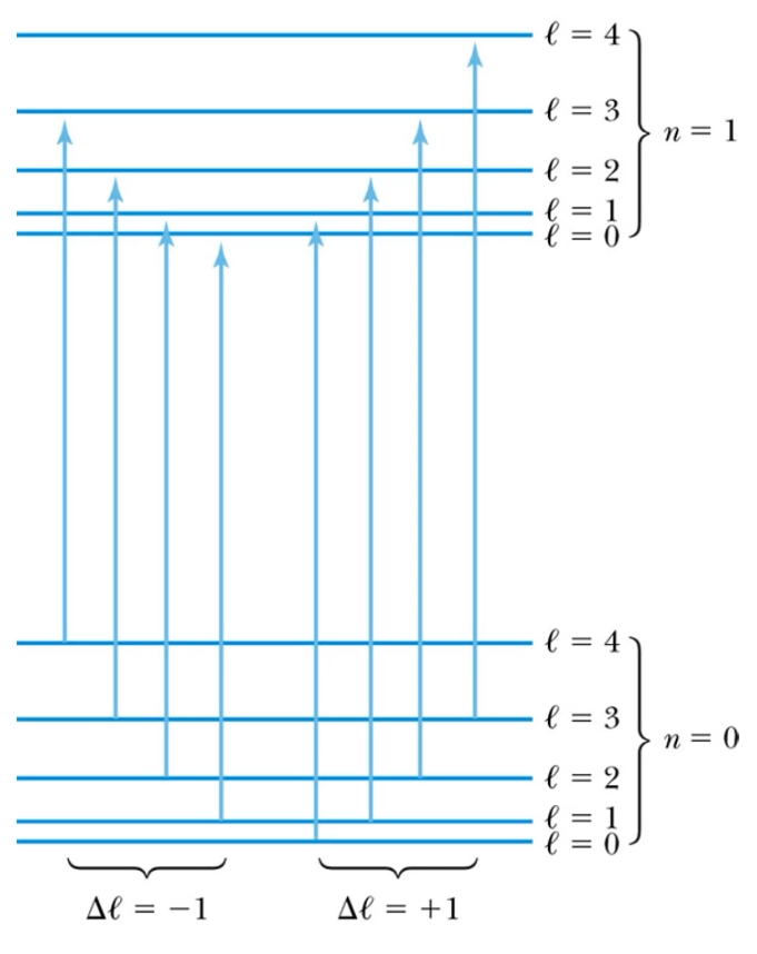 So for transitions for states to , emitted photons will have energies of the different between those of the respective states