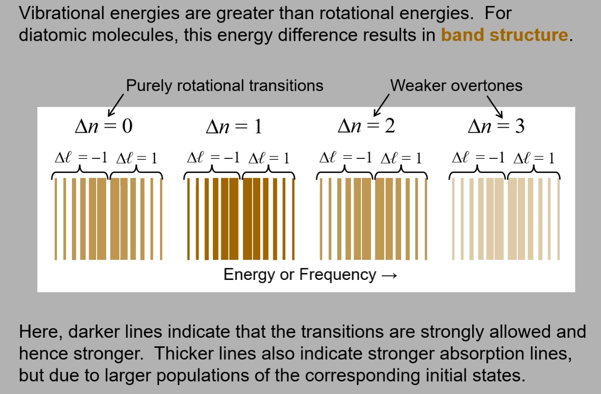 Absorption → molecule can jump one level, absorbing a quantum of energy